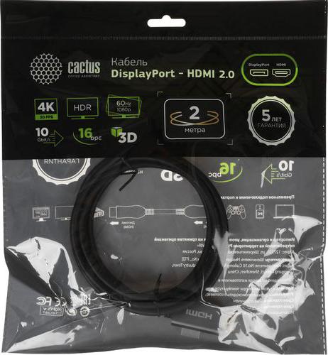 Характеристики Cactus Кабель аудио-видео CS-DP-HDMI-1.2-2, DisplayPort (m) - HDMI (m), 2м, GOLD, черный