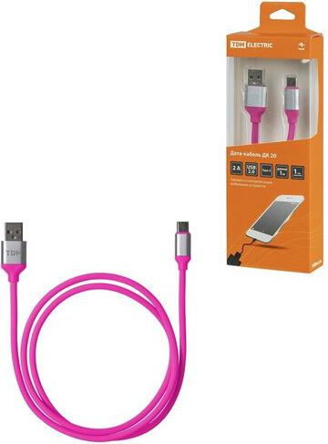 TDM Electric Дата-кабель, ДК 20, USB - USB Type-C, 1 м, силиконовая оплетка, розовый, цена за 1 шт