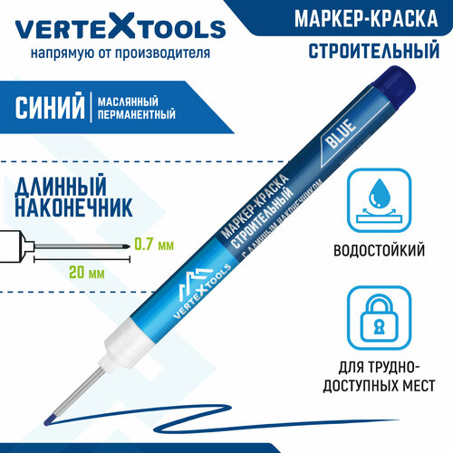 VertexTools Маркер строительный перманентный с длинным наконечником синий